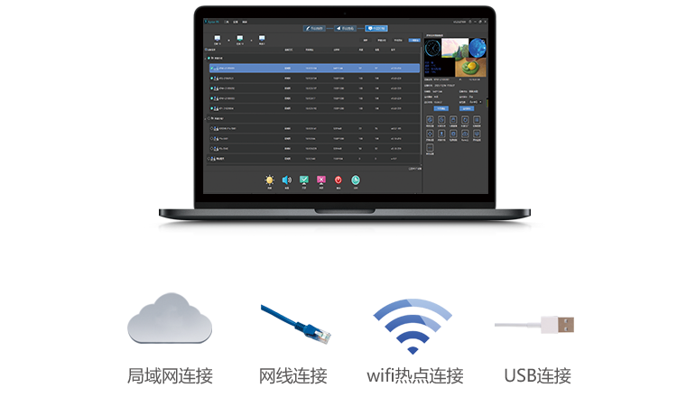 局域网、网线直连、wifi连接、U盘传输等多种方式连接和管理潘多拉播放终端,可轻松应对普通门头屏和户外广告屏的集群管理等应用现场。