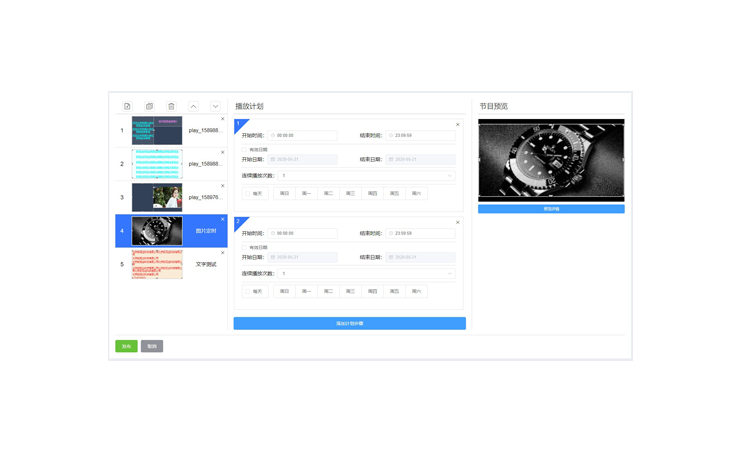 07The concise program publishing interface easily realizes multi-directional control of the playback time, sequence, frequency, content and other columns, and releases programs in an orderly manner.