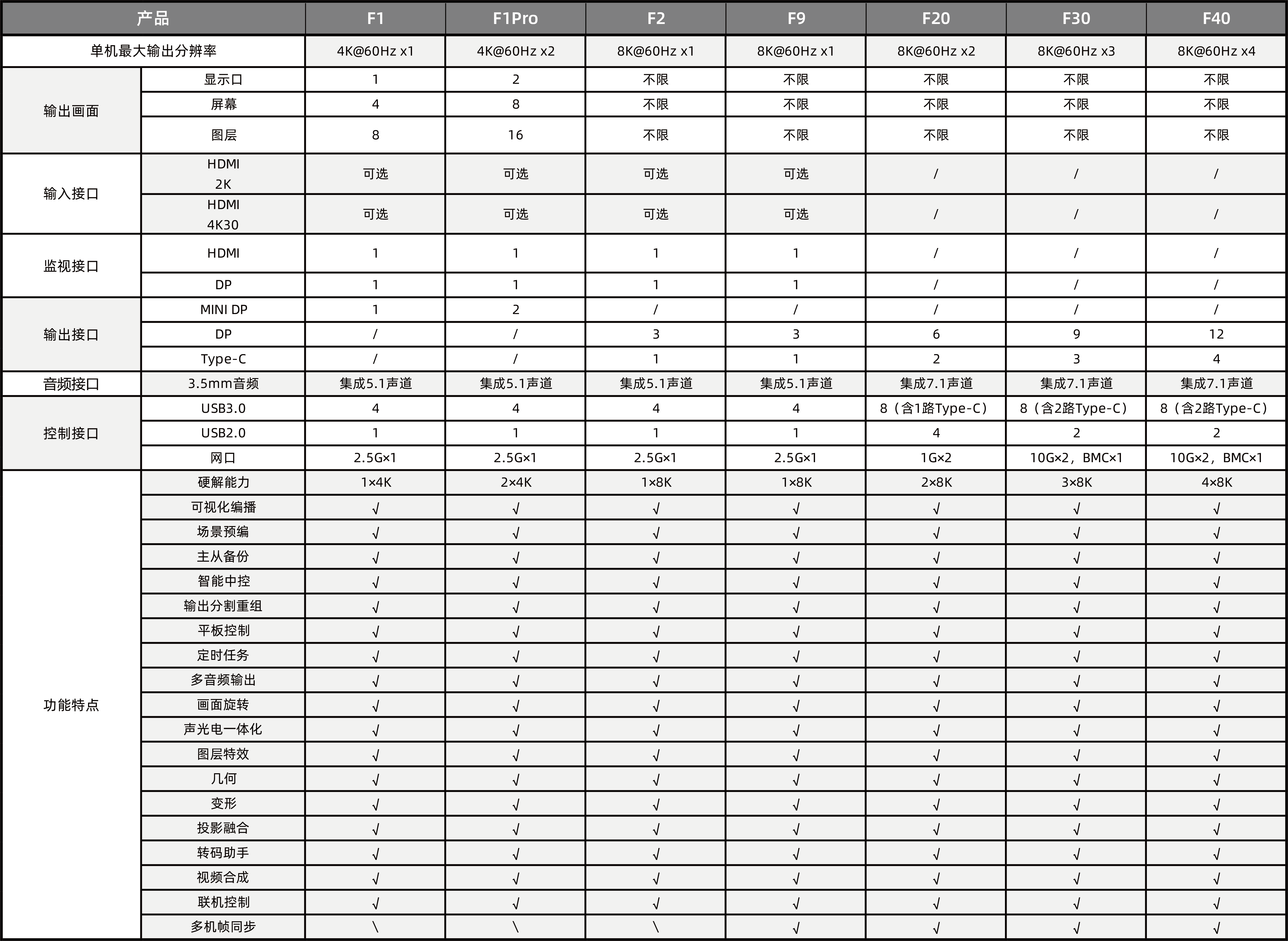 超大分辨率显示屏的控制。级联时,所有设备处于