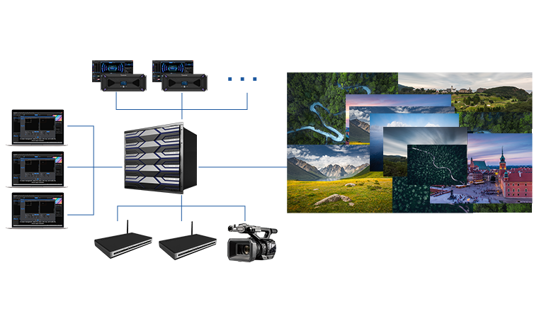 ·外部多台Kommander服务器接入时达到帧同步,可实现16K及以上屏幕点对点完全帧同步显示 |