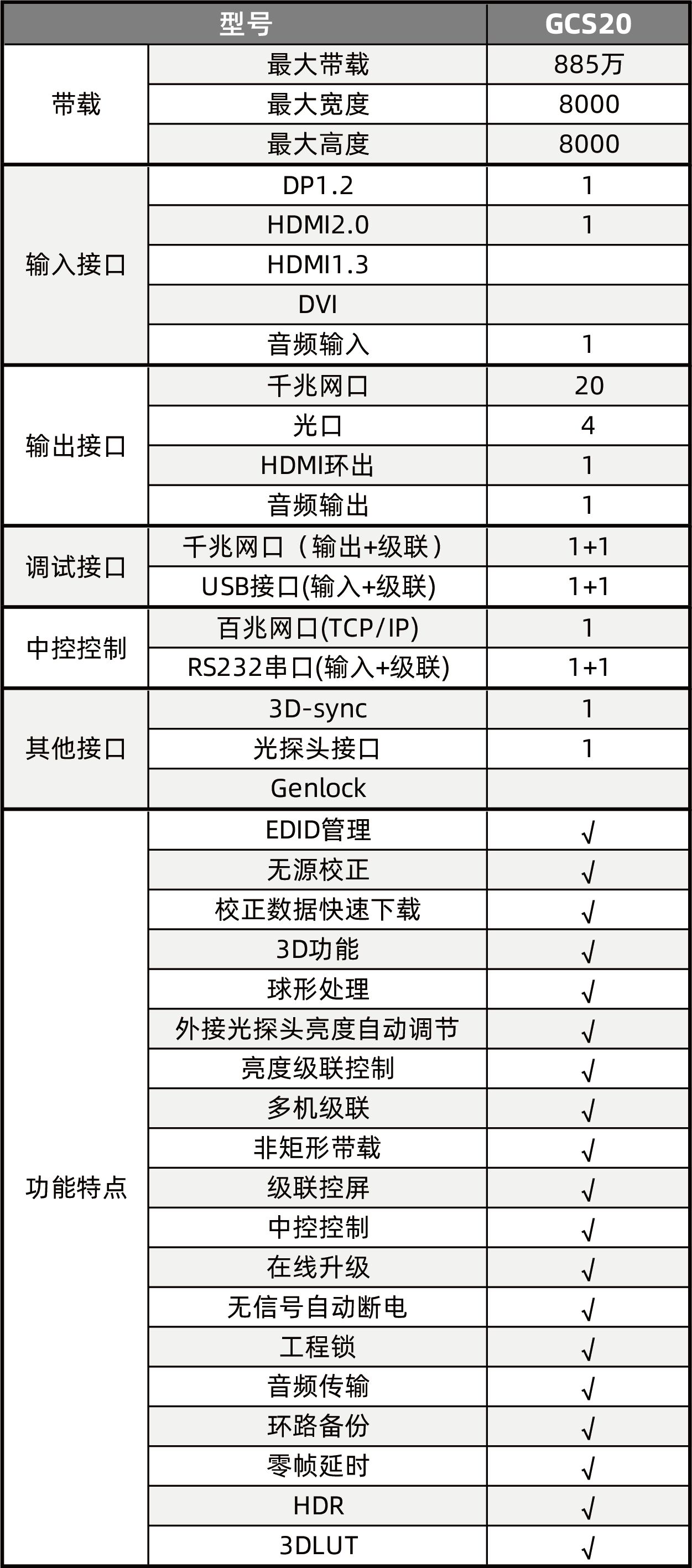 20路网口带载,单机最大带载885W像素,最宽或最高可达8000。