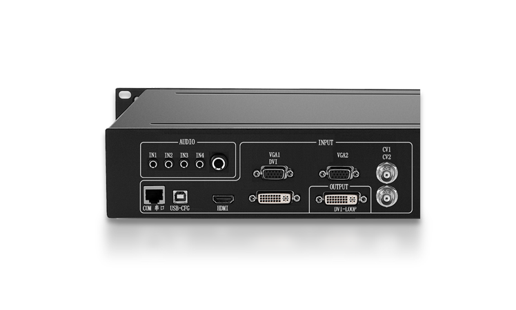 01LS6 supports six-channel HD video signal input, including DVI×1, HDMI×1, VGA×2, CVBS×2.